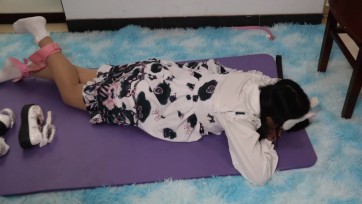 【云雀工作室】柳洋&文文-新模体验-单腿吊缚、蒙眼、丝袜套头、充气口塞