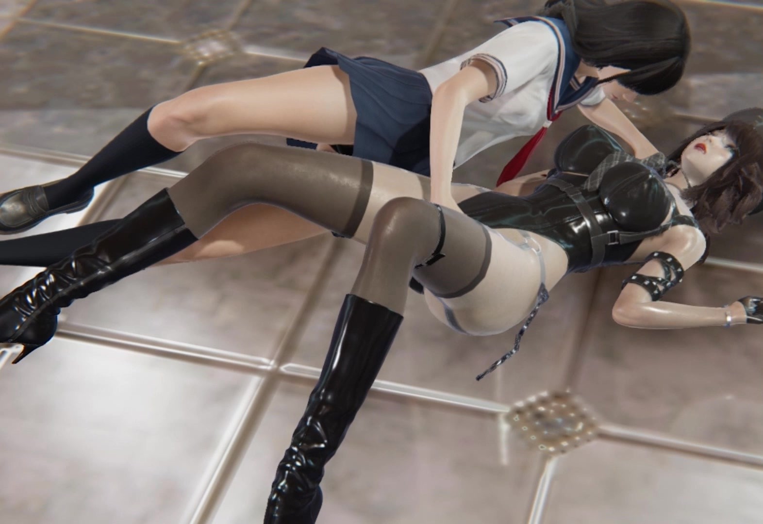 【3D动画】jk女学生百合调教女特工