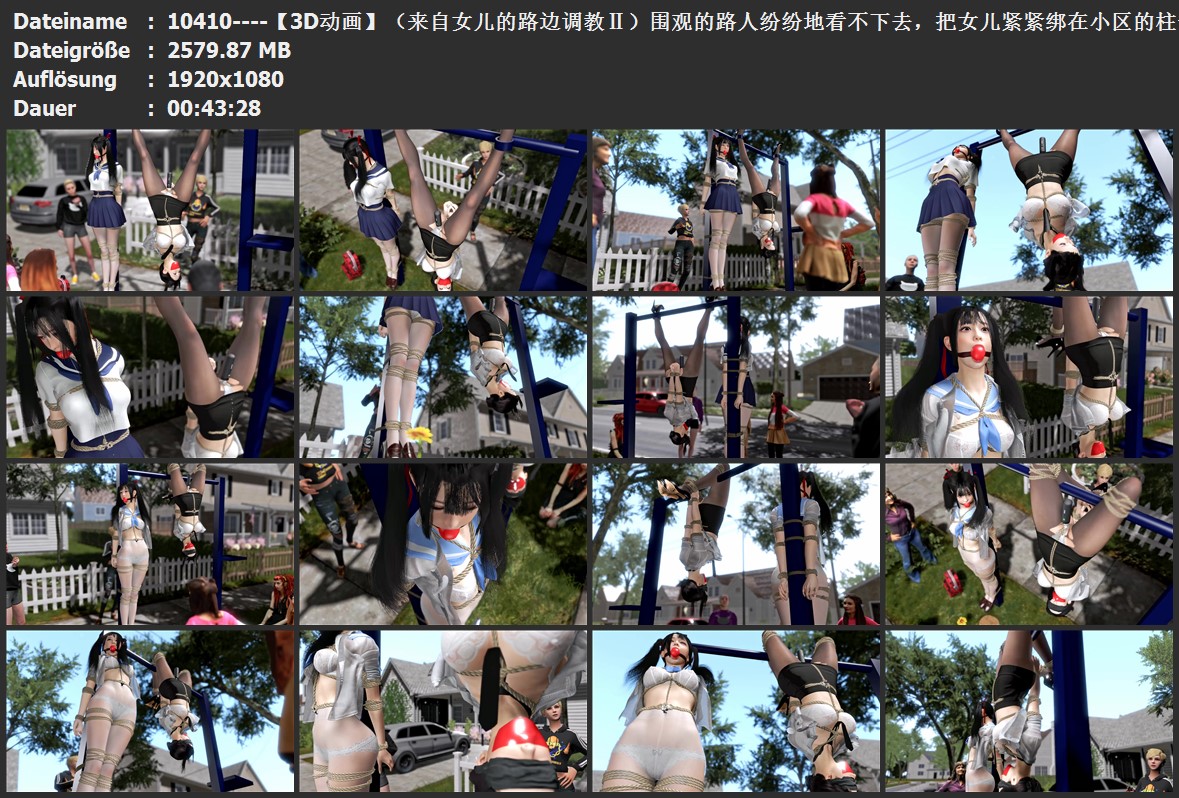 【3D动画】(来自女儿的路边调教Ⅱ)围观的路人纷纷地看不下去,把女儿紧紧绑在小区的柱子上无法动弹分毫,两女羞耻的接受着大家的围观