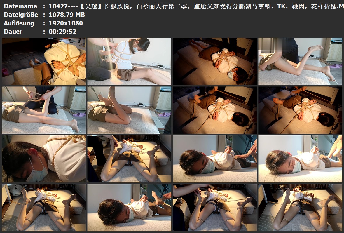 【吴越】长腿欣悦,白衫丽人行第二季,尴尬又难受得分腿驷马禁锢、TK、鞭因,花样折磨