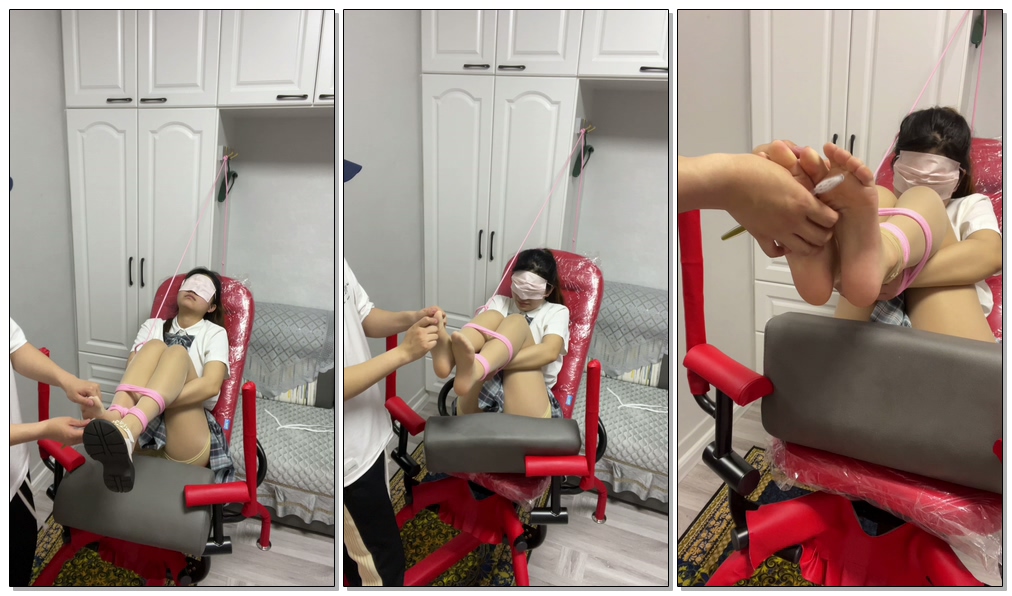 喜欢sm的女孩想体验八爪椅 结果让我捆绑起来 吊起来脚丫脱掉鞋子 开始挠脚心 又撕掉丝袜对着小巧粉嫩脚丫处刑 想挣扎无奈手被反绑起来 牙刷挠脚心痒的不行 折磨下来人都虚了