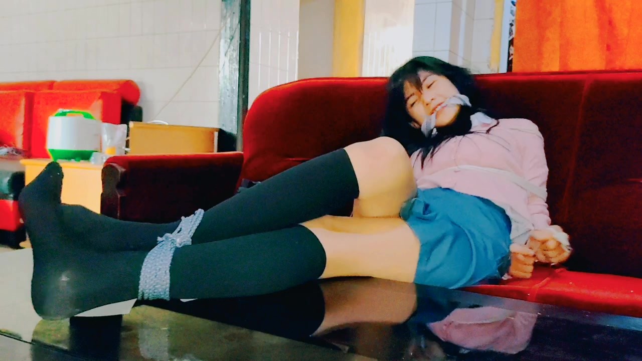 这个大学生刚回到家,就被绑匪给她下了药。 绑匪把他绑在沙发上,把他的脚放在桌子上。 苏醒后,这名学生奋力挣脱。 他设法撕下盖住嘴巴的胶带,大声呼救。 绑匪听到了,拿起他穿的袜子,塞进学生嘴里,用胶带粘住。 臭袜子现在在这个可怜的女孩嘴里。 他只能继续挣扎,祈祷帮助到来。
