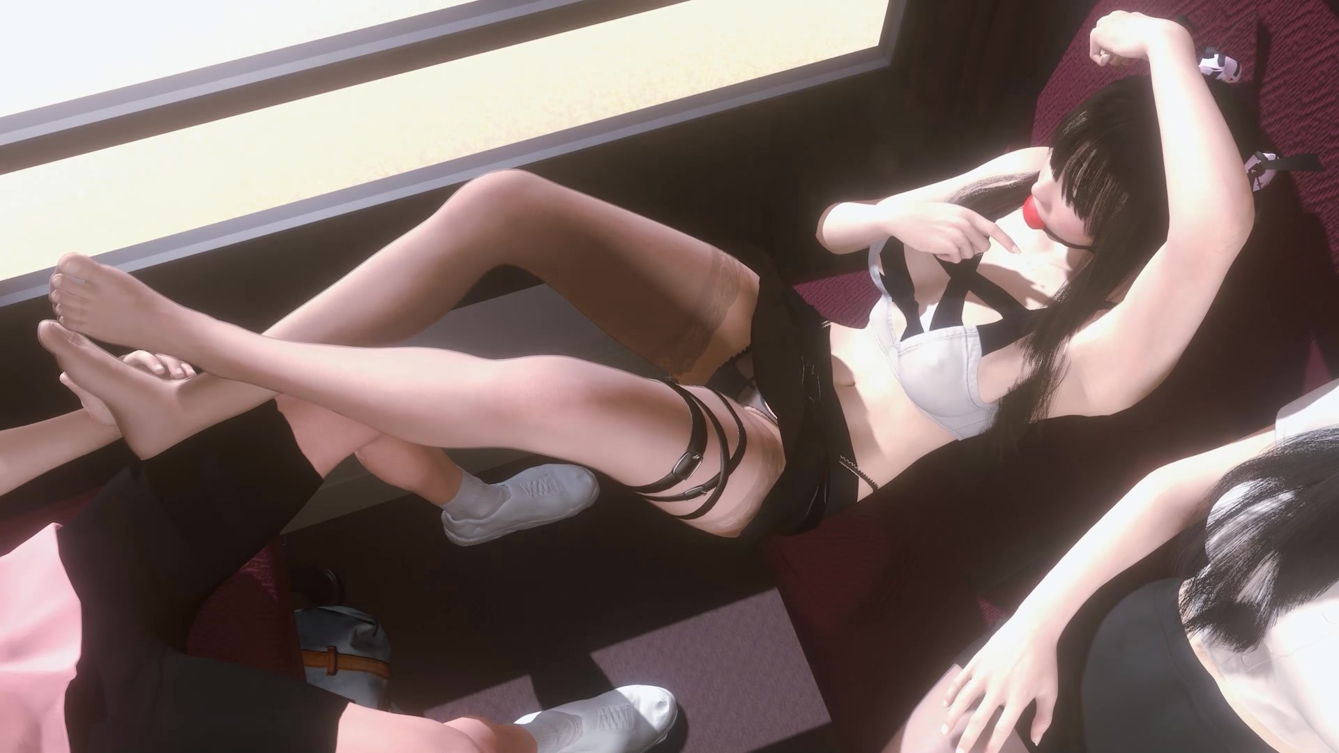 【3D动画】(火车上的姐妹花)车厢进来一对姐妹花,趁着姐姐睡着,妹妹摘下口罩露出满是口水的口球,被紧紧束缚住的妹妹对着男乘客一顿挑逗