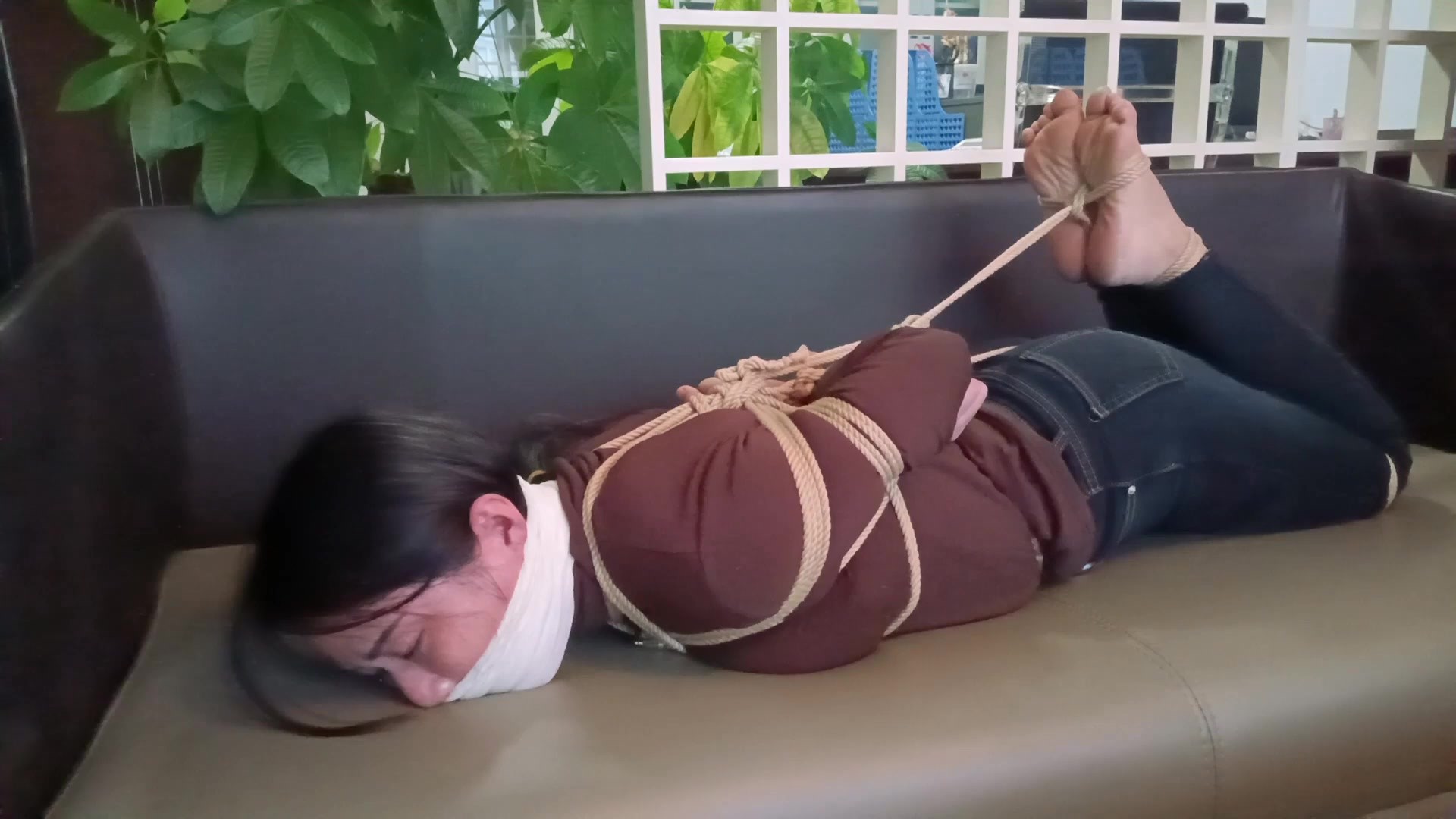 【吴越】盼盼二拍第二季,大床上的坐缚与股绳驷马,TK挑逗、挣扎、10CM一字带凉高、赤裸美足各种扭动特写