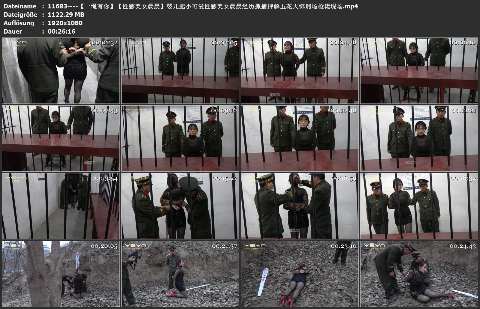 【一绳有你】【性感美女晨晨】婴儿肥小可爱性感美女晨晨经历抓捕押解五花大绑刑场枪毙现场