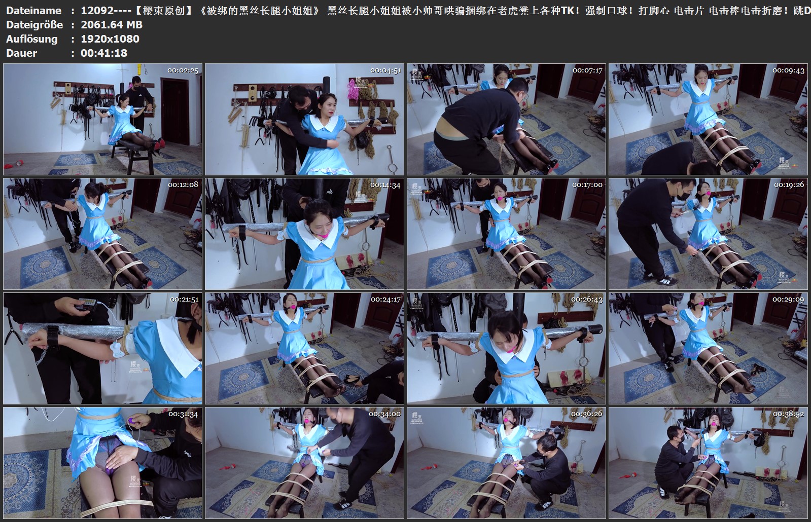 【樱束原创】《被绑的黑丝长腿小姐姐》 黑丝长腿小姐姐被小帅哥哄骗捆绑在老虎凳上各种TK!强制口球!打脚心 电击片 电击棒电击折磨!跳D塞内内强G!抚摸性感黑丝美腿!