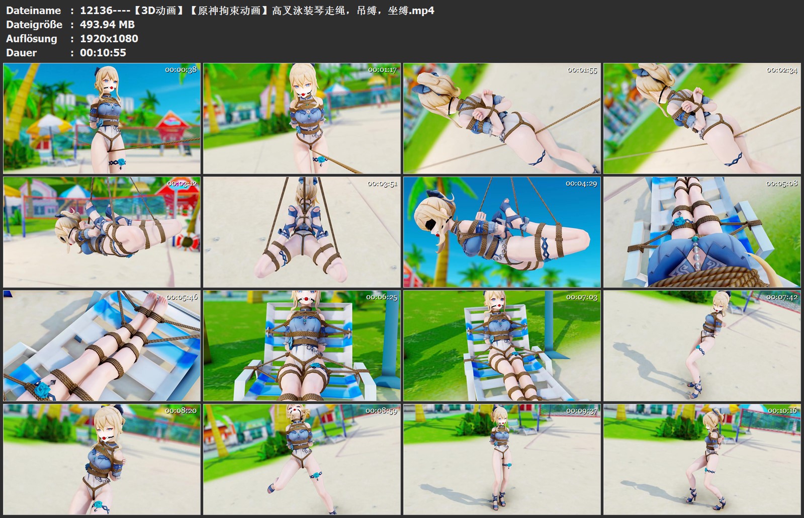 【3D动画】【原神拘束动画】高叉泳装琴走绳,吊缚,坐缚 ...