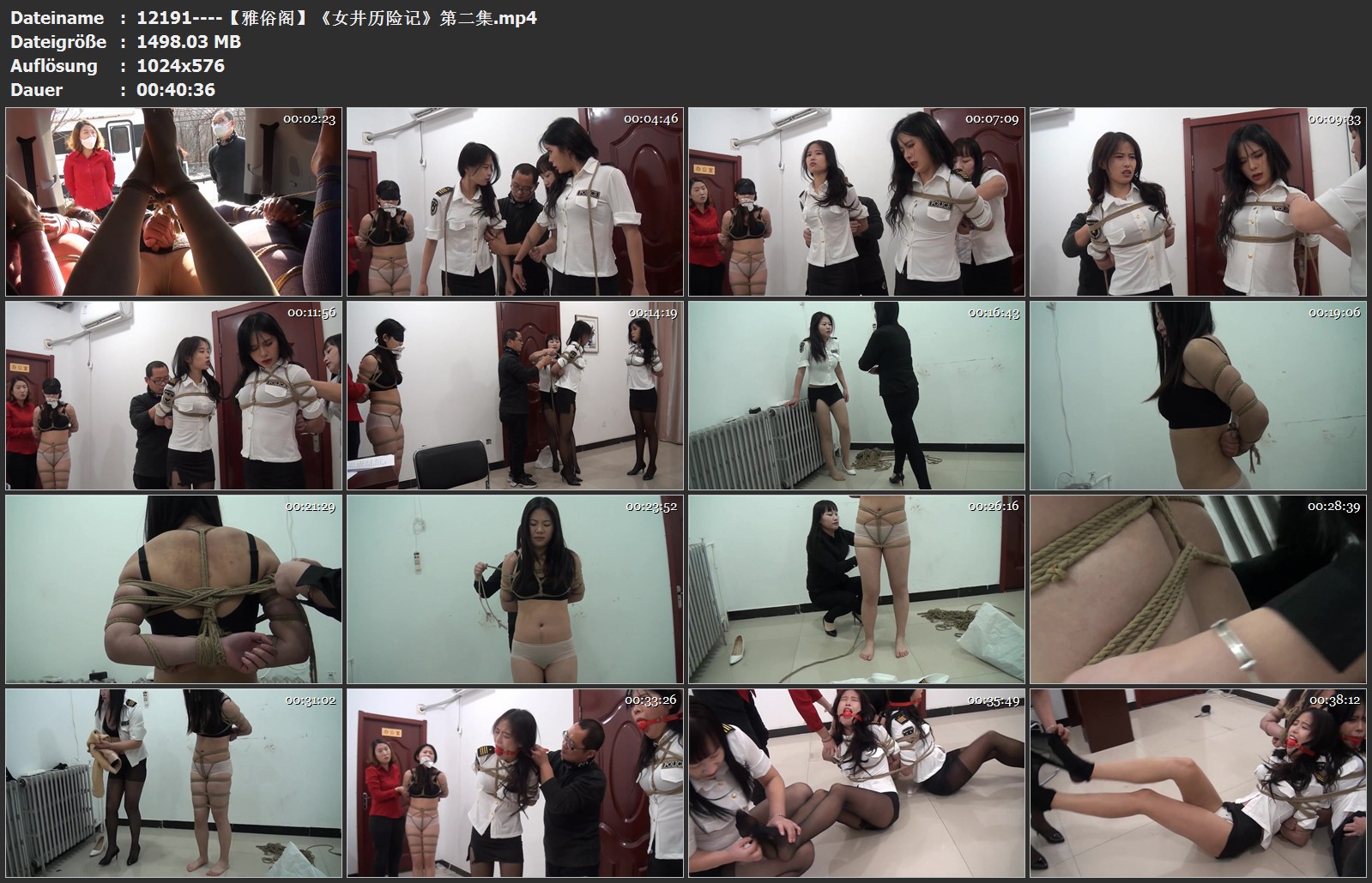 三女被并排绑在车里准备拉走贩卖,后被赶来的同事就下,不久后小雅成为一名民井,这天接到上级通知市里要派遣领导来指导工作。两位女井迎接领导时被要求进行捆绑训练,不了领导是人贩假冒的,真正的领导被她们绑架