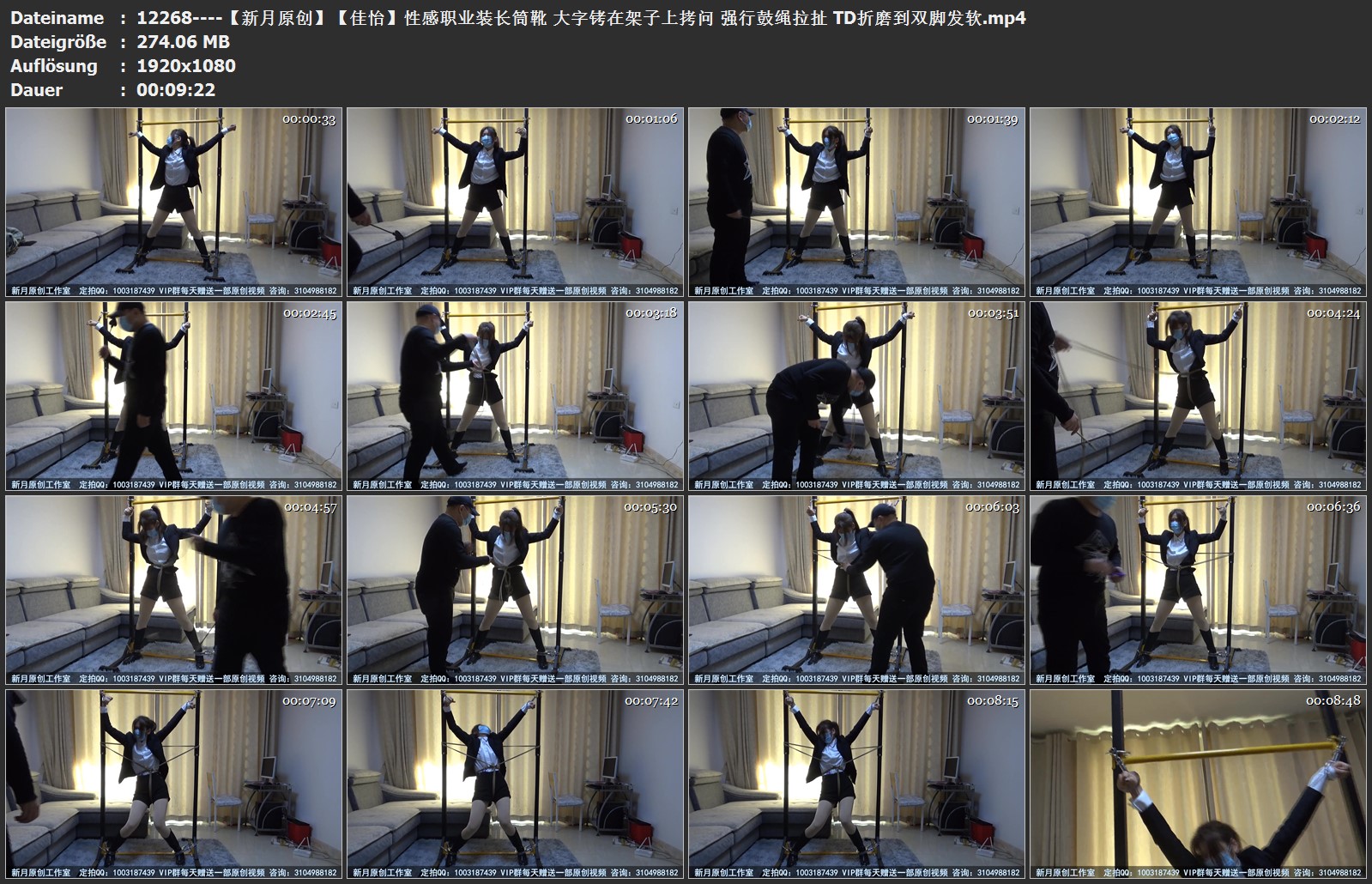【新月原创】【佳怡】性感职业装长筒靴 大字铐在架子上拷问 强行鼓绳拉扯 TD折磨到双脚发软