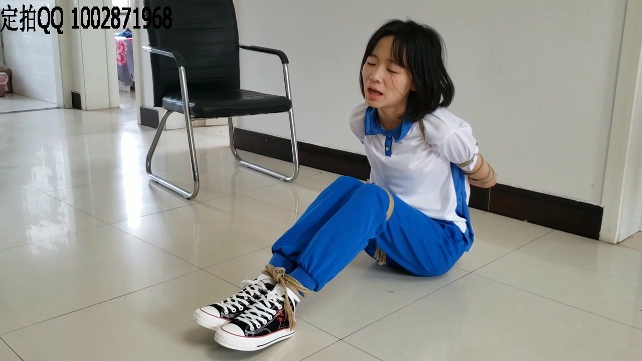 高中女学生回家途中楼道遭劫,迷晕后被变态吊绑在门上,逼问银行卡密码无果,气急败坏的歹徒拿来一把椅子把女孩捆到上面,扒掉鞋子捆绑双腿双脚,强制TK逼问,一番折磨后歹徒才知道,女孩根本没钱,只是一个穷学生,只好把女孩五花捆好全身紧缚,胶带封嘴后拿走了她的书包和行李