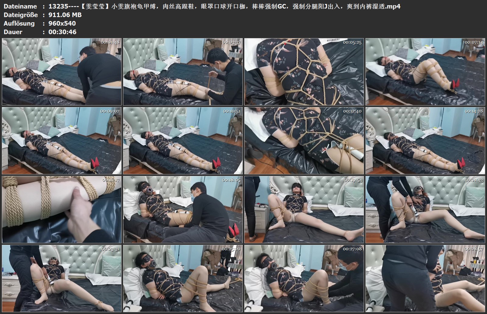 【雯莹莹】小雯旗袍龟甲缚,肉丝高跟鞋,眼罩口球开口枷 ...