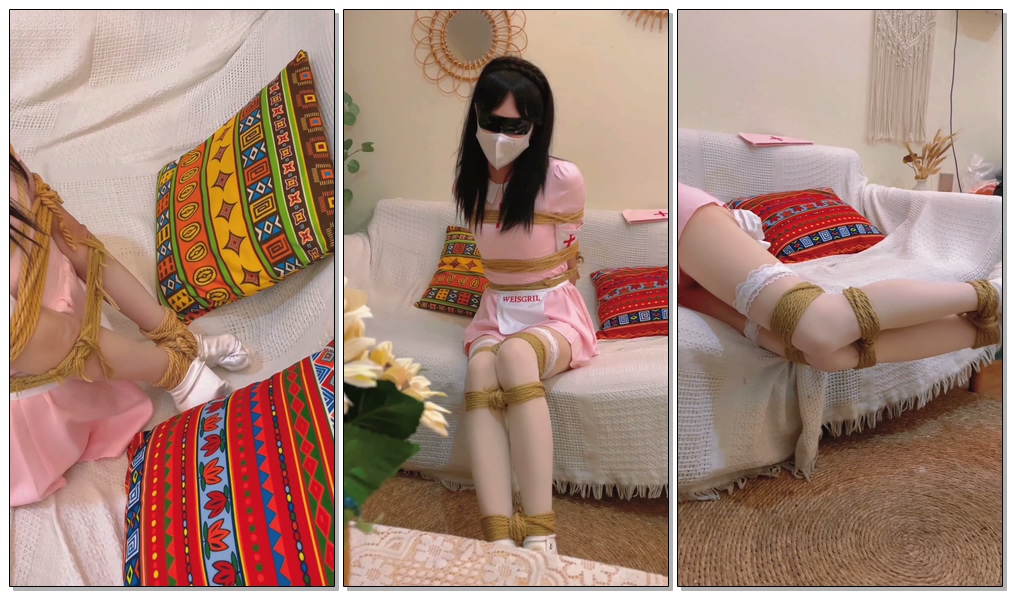 第一次尝试护士装,很久没有试过白丝了,在我自己看来还是比较陌生的颜色hhh这次也是全程被td折磨,一开始其实没有放到太敏感的地方,但是随着身体被绳子捆绑压迫不由自主挣扎的时间,好像感觉到它一点点陷进去了...那种越想摆脱越紧迫的感觉真的很微妙,特别是蒙住眼睛还有感官放大的加持,很难以形容