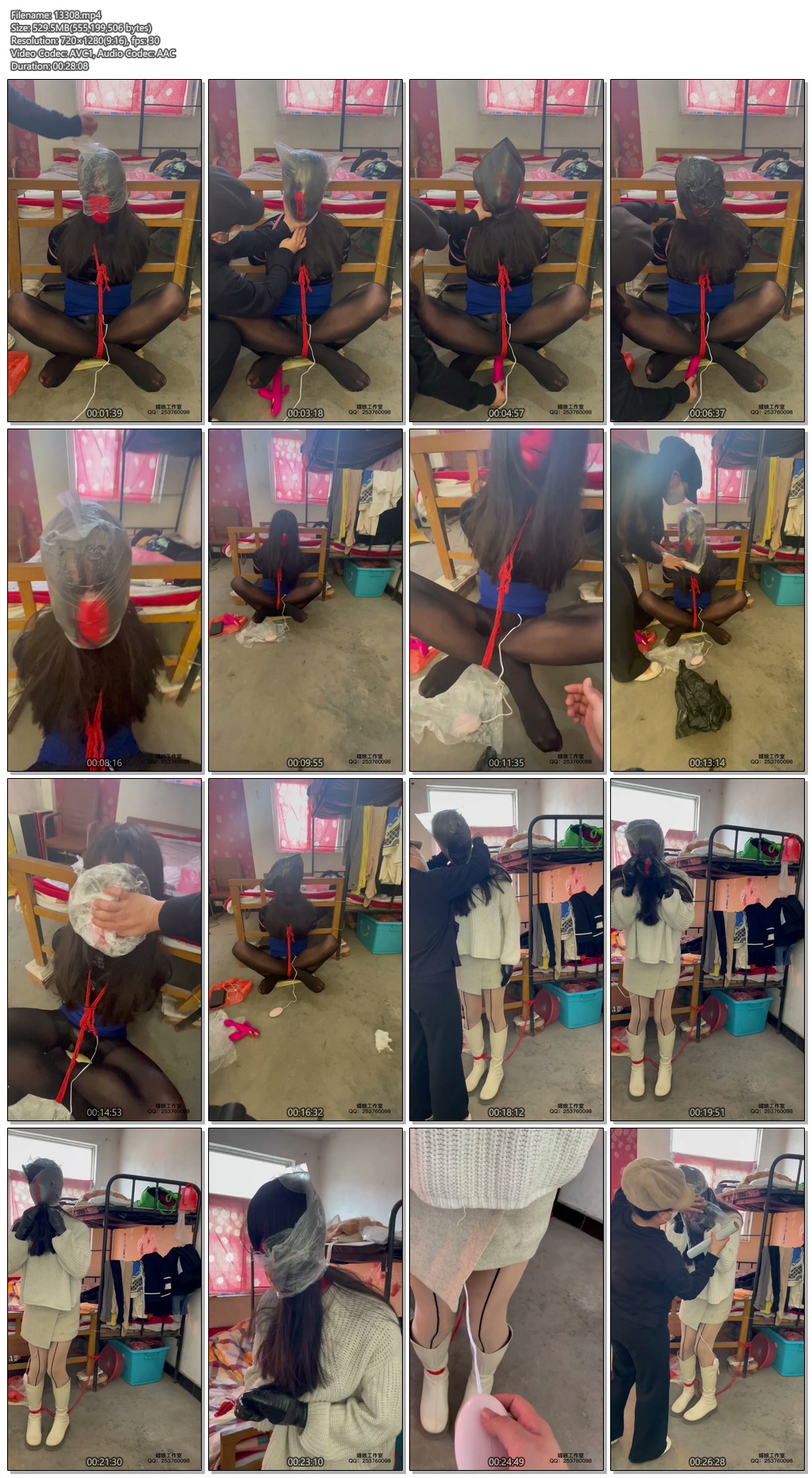 先是坐缚,塑料袋套头,再加上保鲜膜调教