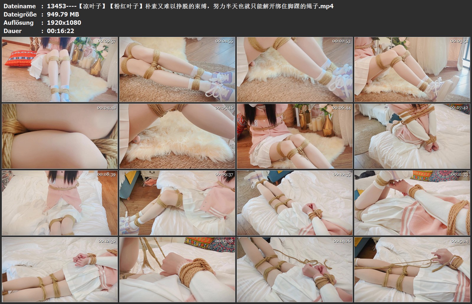 这次是纯纯的脱缚挣扎,前半段被放了TD不过还好用了一半就没什么电了。这种绑法趴在床上蜷起双腿能够到绳结,原本以为这次能好好试试脱缚,但是好像也就只限于这样了...费好大劲解开脚踝上的绳子之后,突然就陷入了迷茫...最多只是多了点移动空间,被绑着的手和大腿没有半点变化,还是被绑得严实。经常有小伙伴问有没有堵嘴,虽然经常会戴着口罩,但是其实几乎每次都有堵嘴的,毕竟对我自己来说堵嘴之后会让我更想快点挣脱,让心里觉得更自然这样,虽然我也不知道为什么hhh
