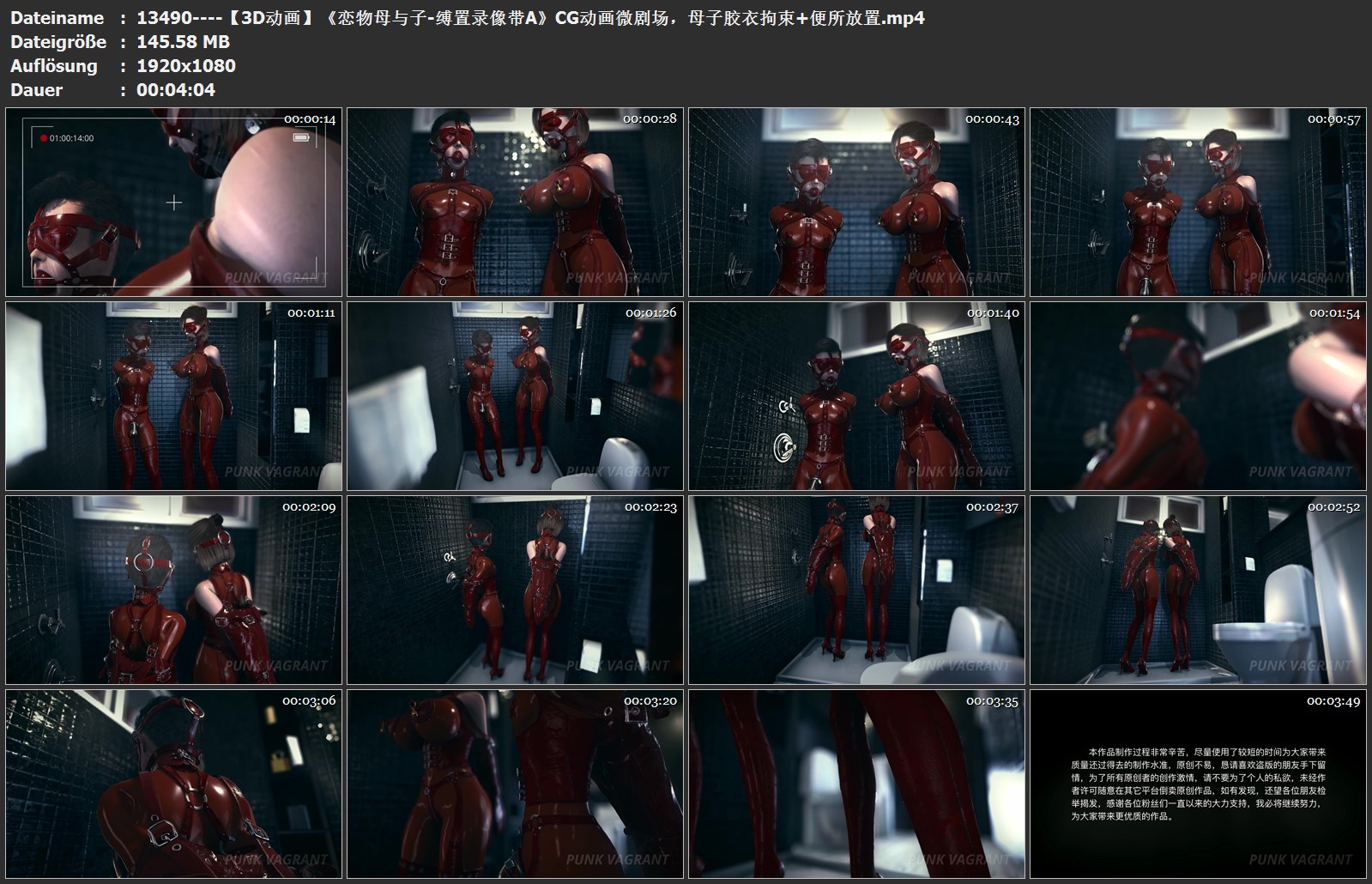 《恋物母与子-缚置录像带A》CG动画微剧场,母子胶衣拘束+便所放置