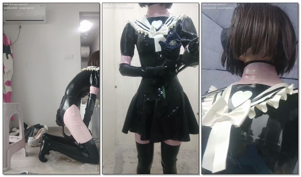 黑色胶衣+乳胶jk双层胶衣,再加上乳胶束腰,满满的包裹感
