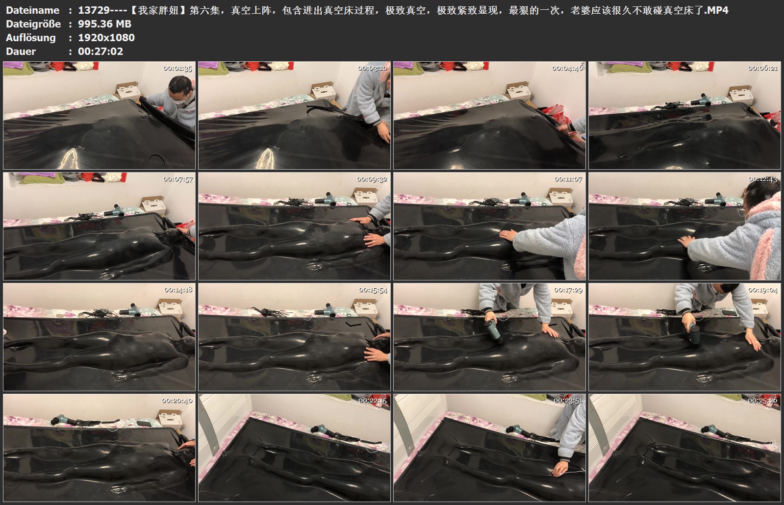 总结一下:太狠了,老婆缓过来后第一时间让我把真空床卖了!这应该是最后一次拍这种极致真空的真空床了。喜欢真空床的,这个视频一定要买!以后就算还拍真空床,也不会有这么狠的情节了,老婆生气了。
