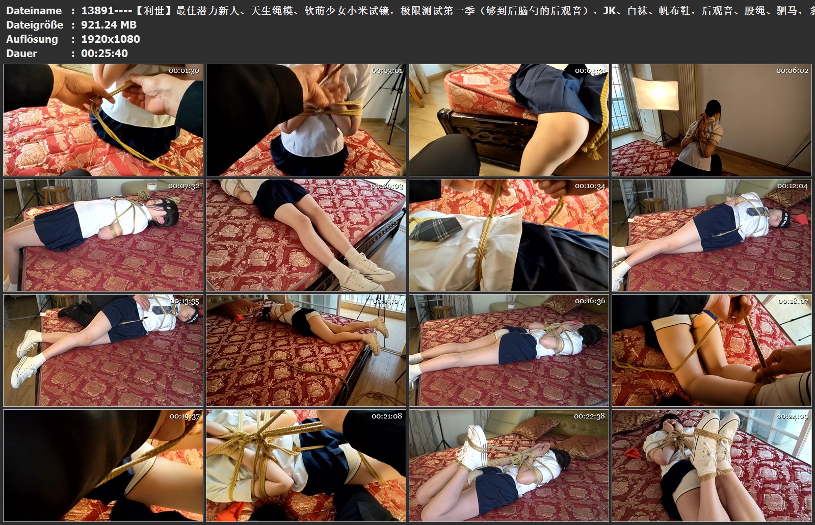 【利世】最佳潜力新人、天生绳模、软萌少女小米试镜,极限测试第一季(够到后脑勺的后观音),JK、白袜、帆布鞋,后观音、股绳、驷马,多场景行动能力观察及测试