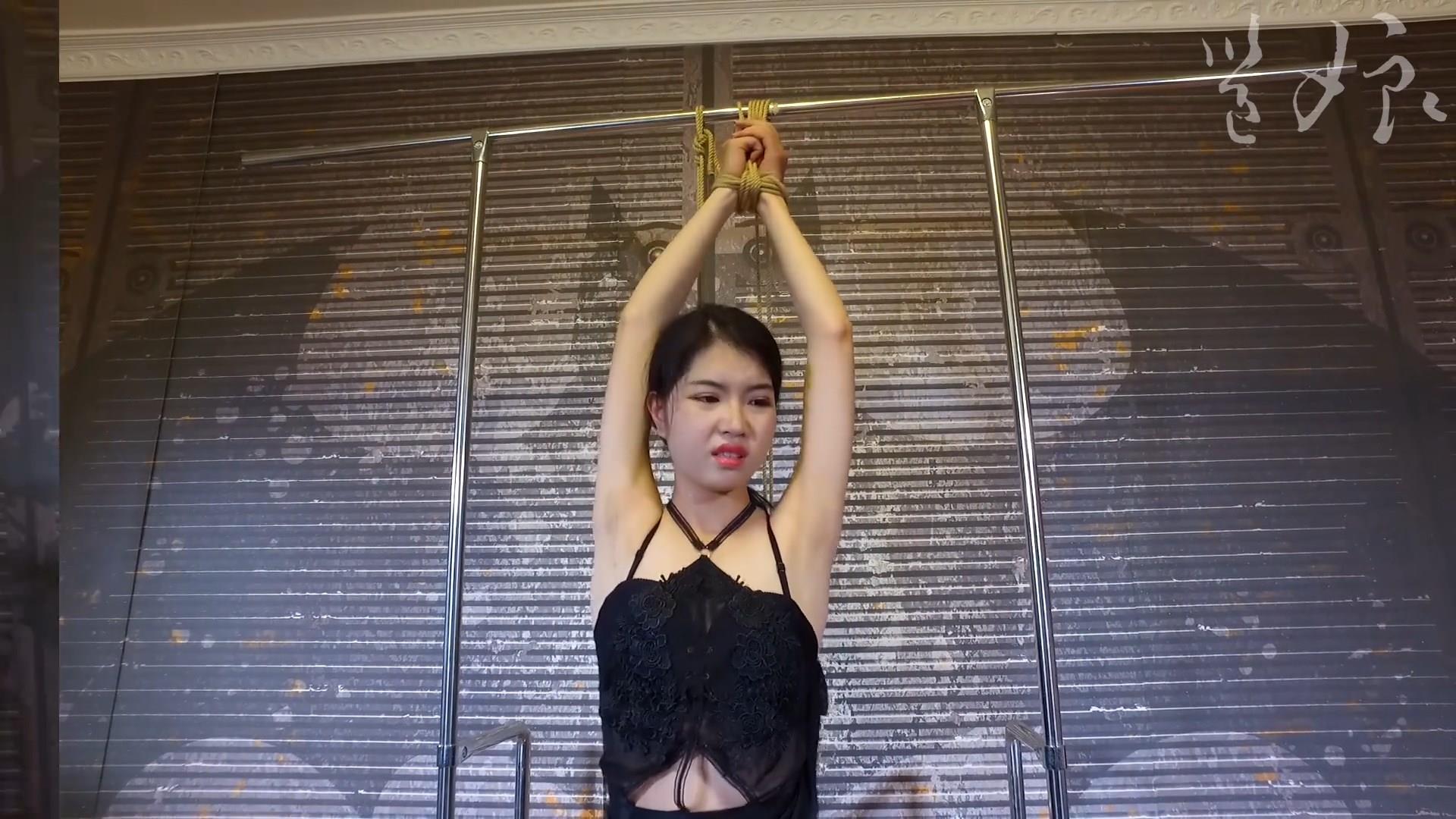黑色内衣,铁架开腿站立,极限忍耐,调教放置