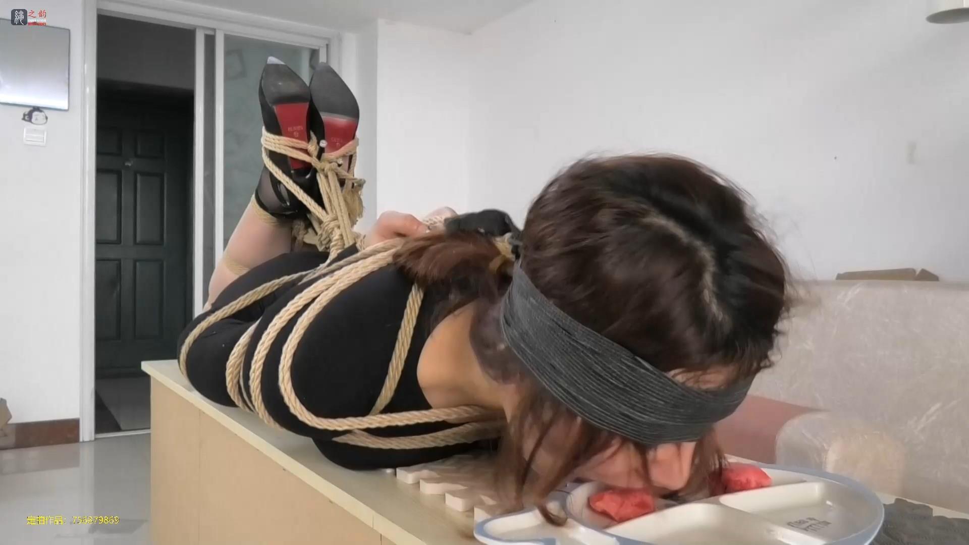 【绳之韵】职场美女安琪极限捆虐系列:黑色OL装、包臀裙,重度驷马捆绑、捆绑脚掌、连接头部强,极限捆绑耐力测试,被迫驷马绑着趴在柜子上吃西瓜、喝酸奶(无废点,纯干货,下集)