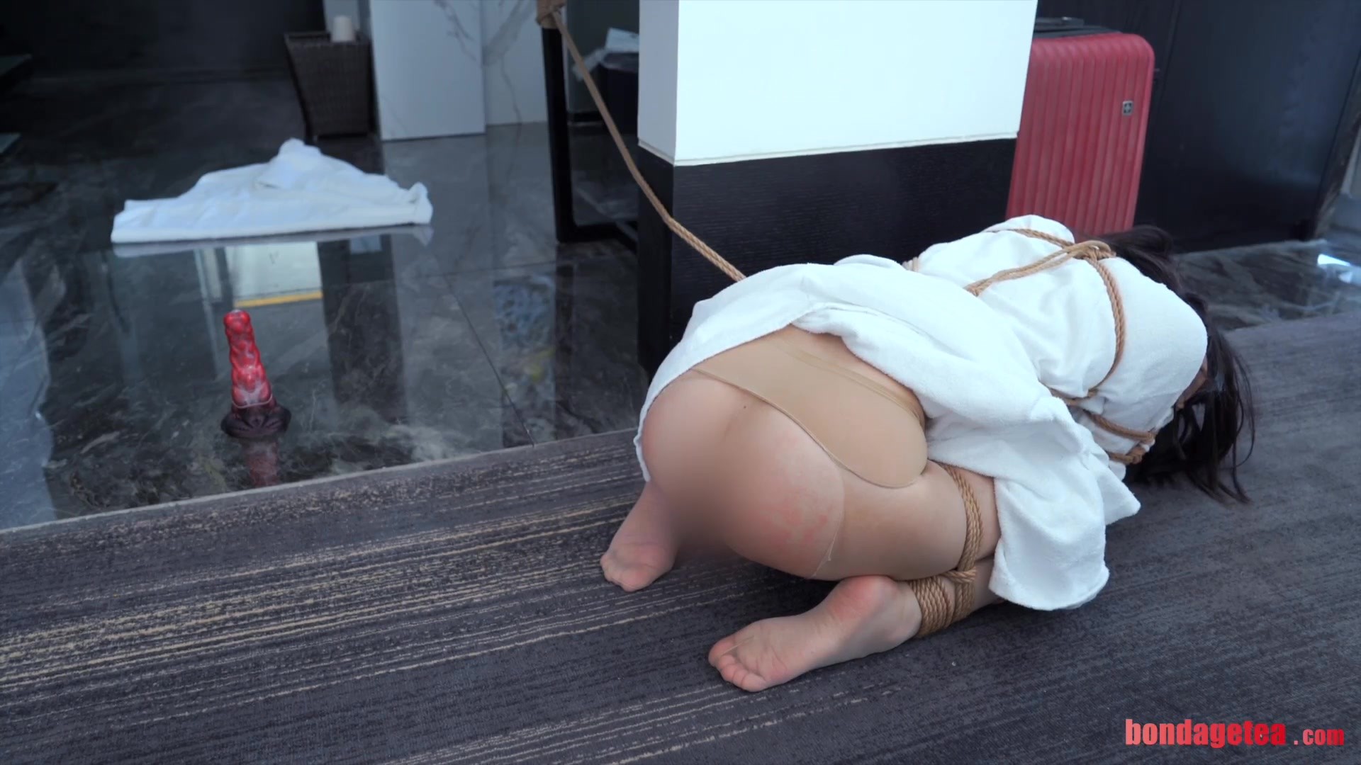 【绳精病】洋妞尼龙紧身衣全包丝滑娃娃紧缚股绳折磨菊子钩住用力打屁股没想到这么爽