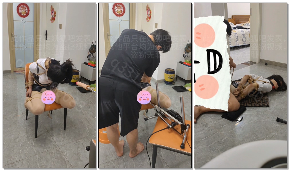 晚上8点,大叔下班回家了,打开门就是已经被放置在椅子上4个多小时双腿被折叠捆绑的丫丫,这是的丫丫早就已经全身无力!由于这次口球用了最大号的,下巴有点闭不回来了,瘫痪在椅子上,大叔为了让她打起精神来,去把柜子里的跑基搬了出来,,,然后找好位置,架上!开机的那一刻,丫丫死灰复燃,瞬间变得活动起来,接下来就可以继续愉快的玩耍了!