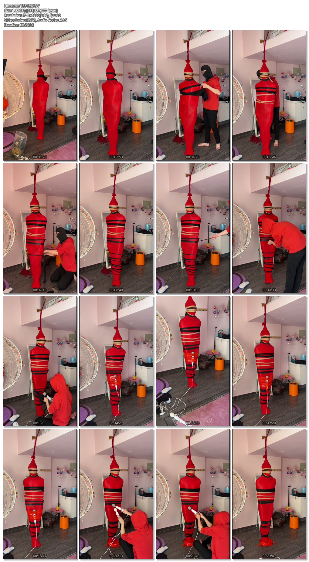 这一次黑魔法师采用了站缚的方式,M被包裹在丝袜里面,强迫站在原地接受调教。在黑魔法师的房间里面,有一个被站缚的M,黑魔法师先用红色的丝袜将M包裹起来,然后吊住一端使M无法弯腰,只能保持站姿,接着用十几条丝袜捆绑在M的身上,使m全身上下动弹不得,只能来回扭动身体。捆绑好以后,黑魔法师将[X_X]固定在m的双腿之间开始按摩,因为[X_X]也被丝袜固定在M身上,不论怎么扭动自己的身体也躲不开,只能乖乖忍受[X_X]的刺激。榨出来一次以后,黑魔法师拿出第二根[X_X]一起刺激M的身体,这一次的反应更加剧烈,两根[X_X]上下夹击,将M折磨到无法忍受,M被调教得精疲力尽,黑魔法师才收起了[X_X]离开房间。