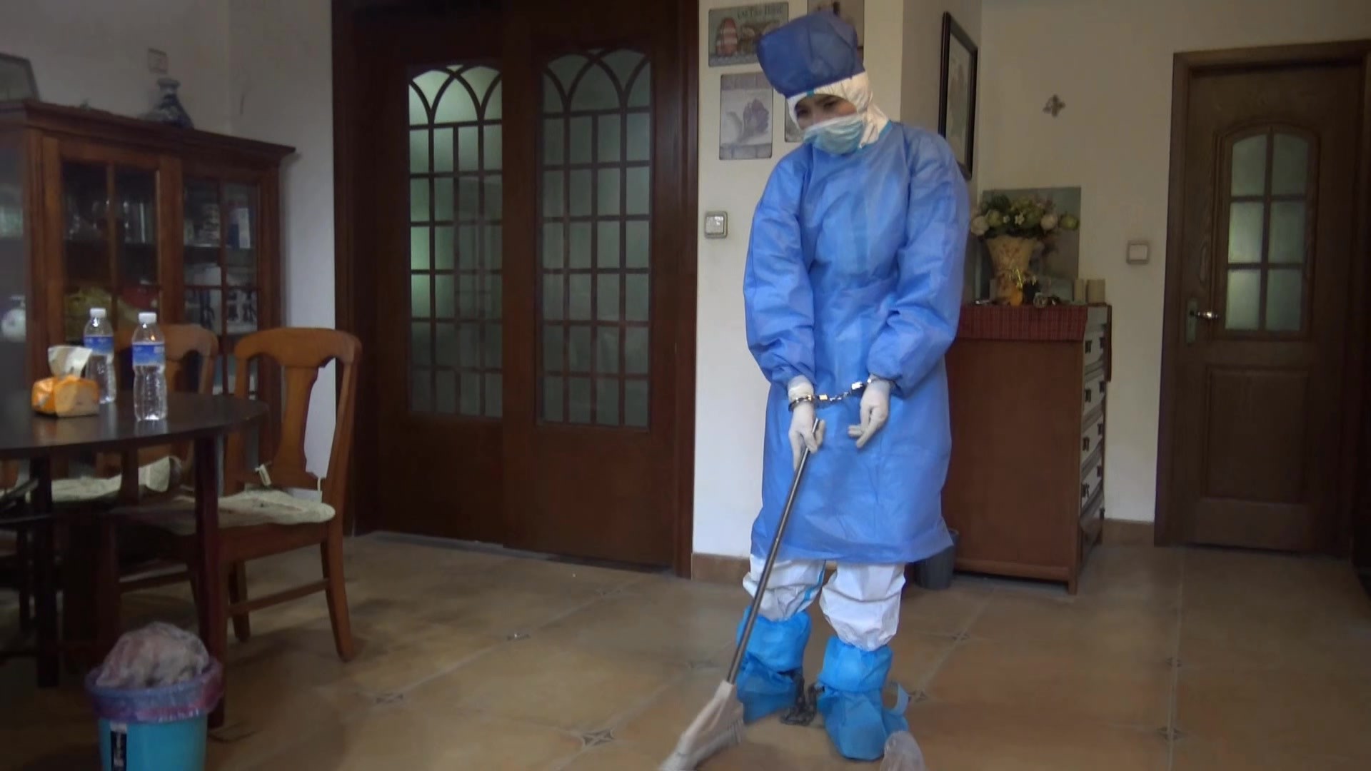 【胜景影视】《穿防护服戴镣铐的女M》 下集 全网首部穿着防护服戴着镣铐干家务