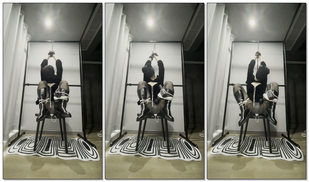 【我啊酷酷】伪娘黑丝过膝长靴NU夹椅子拘束放置自缚电击筋膜枪榨汁
