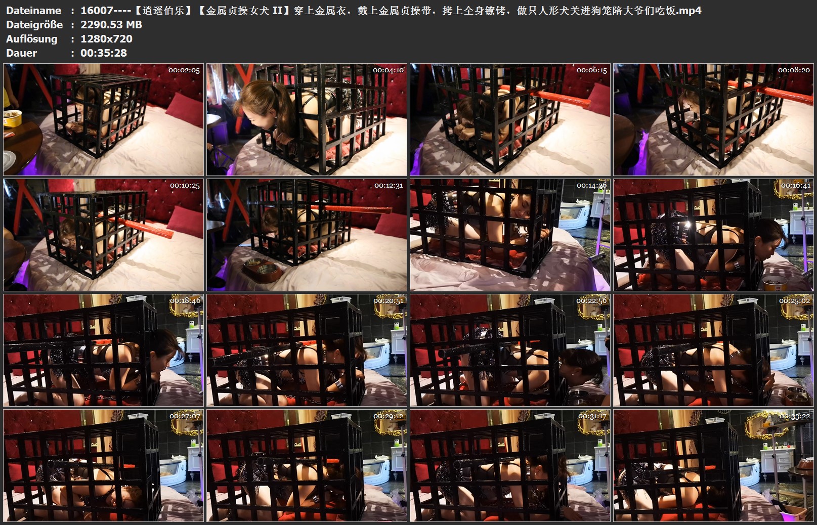 【逍遥伯乐】【金属贞操女犬 II】穿上金属衣,戴上金属贞操带,拷上全身镣铐,做只人形犬关进狗笼陪大爷们吃饭