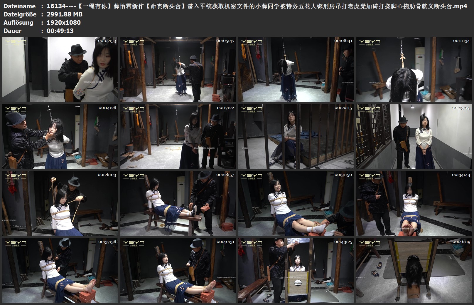 【一绳有你】薛怡君新作【命丧断头台】潜入军统获取机密文件的小薛同学被特务五花大绑刑房吊打老虎凳加砖打挠脚心挠肋骨就义断头台