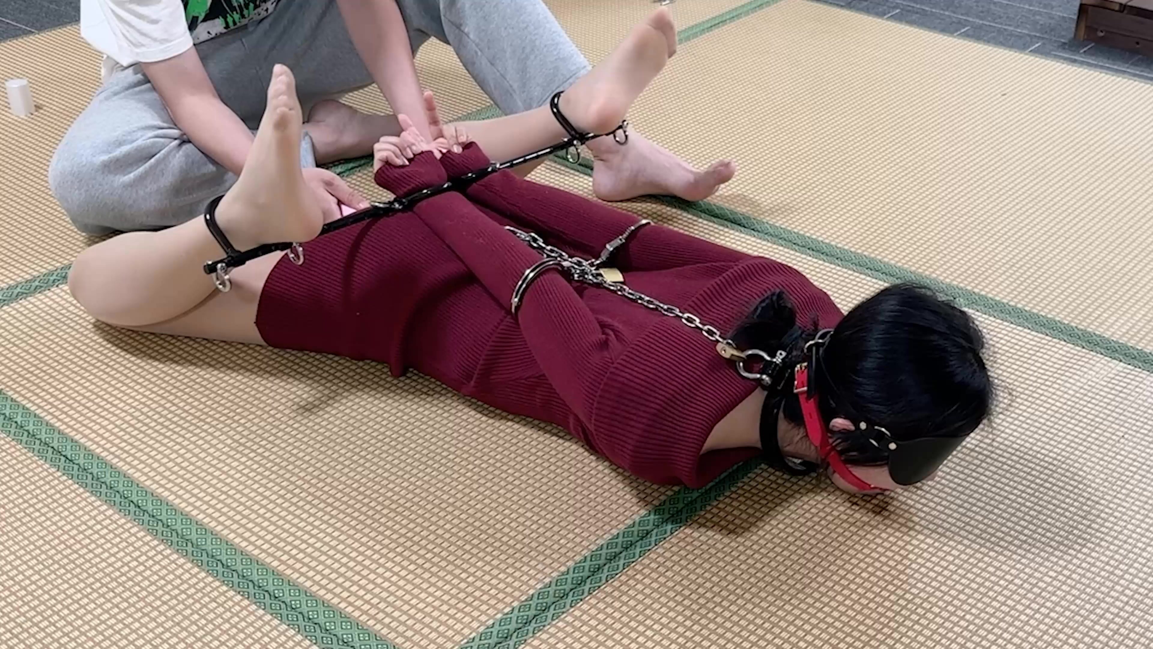 用拘束器驷马固定,把脚和手固定在一起。让小m的双腿分开,方便后入。再[X_X]肛勾和脖子上的项圈相连,只要脖子动,肛勾就会更深。最后泡机墙制GC