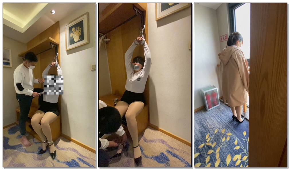 楼梯T教,丝袜红底高跟凉鞋,手铐吊,胶带封嘴走廊探险,发现监控被迫返回,落地窗前O葆快乐棒gc+挠脚心等T教zhe磨+压舌口夹+快乐棒ci激放置