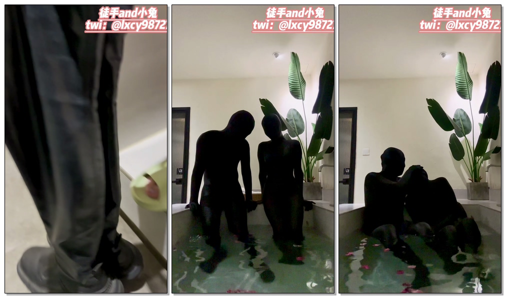 炎炎夏日过膝靴外出后,脱下靴子换上Zentai紧身衣,浴池双人泡澡,互相抚摸,将水打在脸上水刑呼吸play~在最近持续高温接近40度的天气里,我订了一个浴池的酒店想要泡一泡解解暑,在外出探店打卡拍照时,小兔竟然选择了穿过膝靴,要时尚不要温度,在拍完照后我们回到酒店,我迫不及待地将浴池打开放水,并记录下她脱靴子的过程,脱下时扑鼻而来的皮革在高温下的味道~随后小兔和我换上Zentai,准备一起试一下穿着全包Zentai泡澡,由于水的温度高,降了一会温度她才先下水,随我我也下水了,穿着Zentai泡澡真的非常舒服,湿了后的紧身衣完全贴服在皮肤上,我们互相抚摸着对方,我还将水打在脸上水刑呼吸play,后来她也这么做了起来,由于屋内水蒸气过多和打湿了头套,我俩的呼吸都变得十分困难,实在忍不住后停止了拍摄~