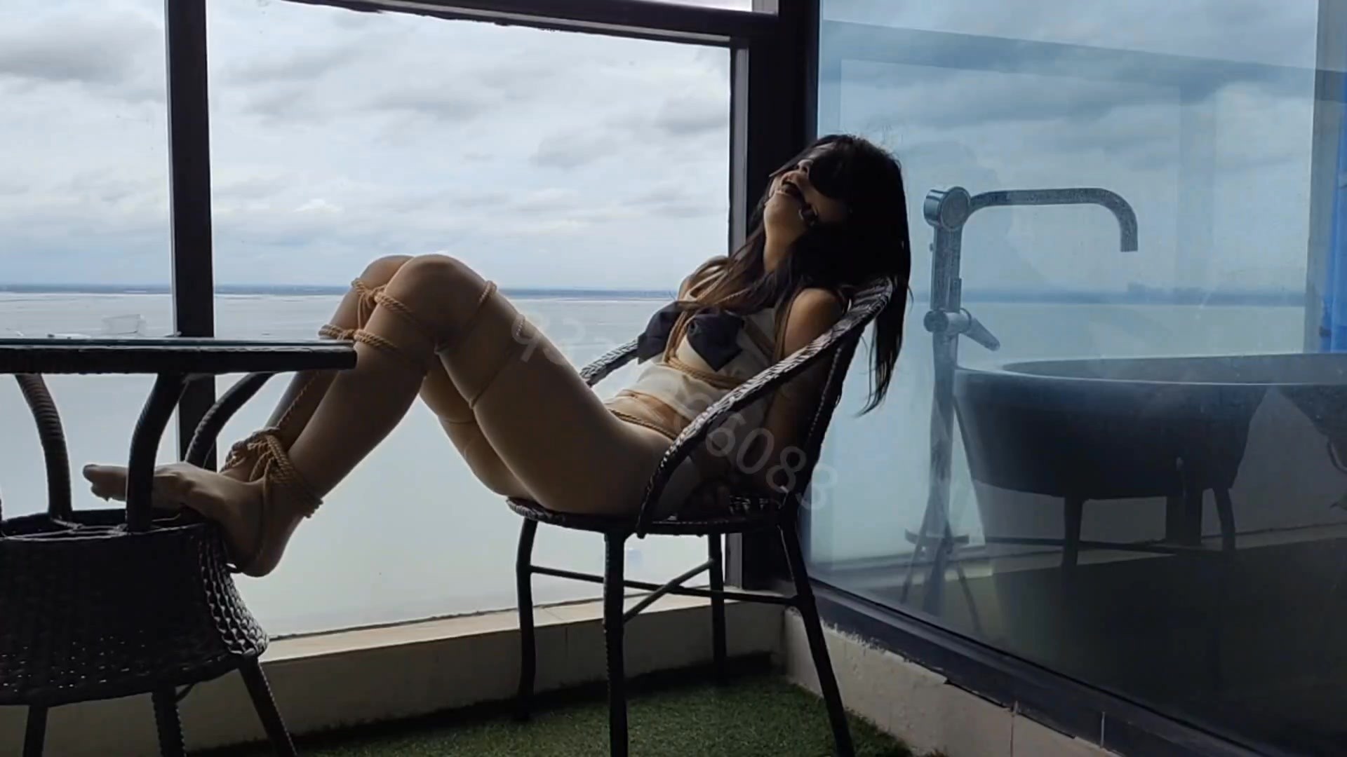 海边的风景是挺好看的,丫丫特别喜欢,于是大叔把丫丫绑在阳台上,让她看个够,但是过分的是习惯性的把眼睛蒙上了,这下就整得尴尬了,好的她很是生气