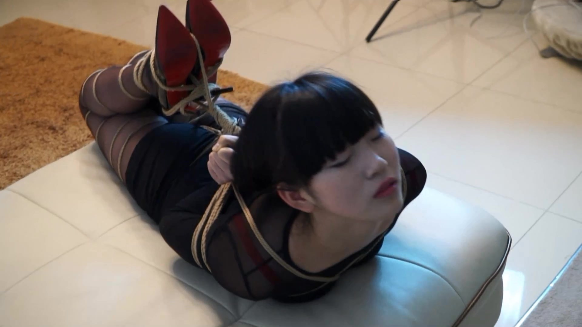 【逍遥】捆绑挣扎-黑丝麻花辫四马捆绑