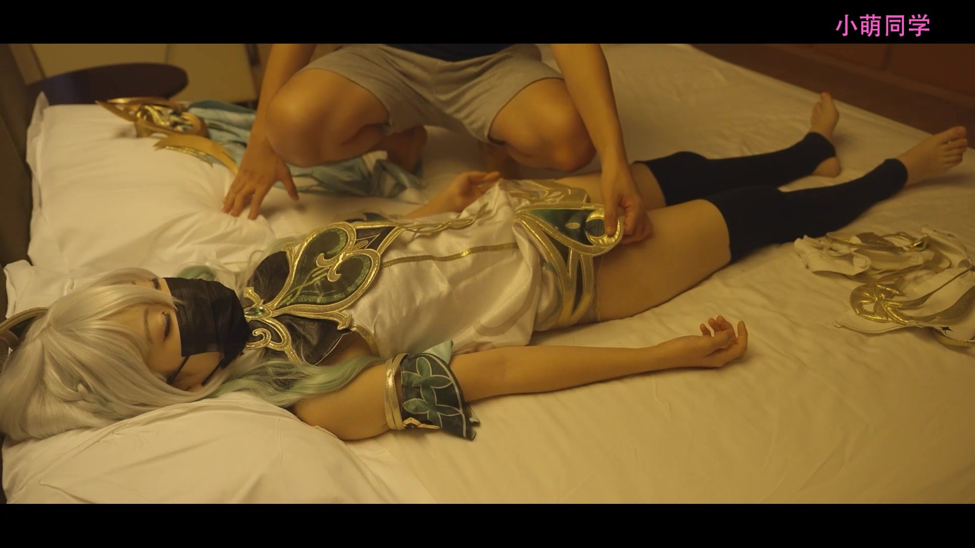 夜深人静的夜晚,小草神准备睡觉了,歹徒从柜员那拿到了备用房卡,偷偷打开了门准备偷窃,发现主人在房,是个可爱的小草神,于是用腿按着她的手,把她勒死。然后就对其脚