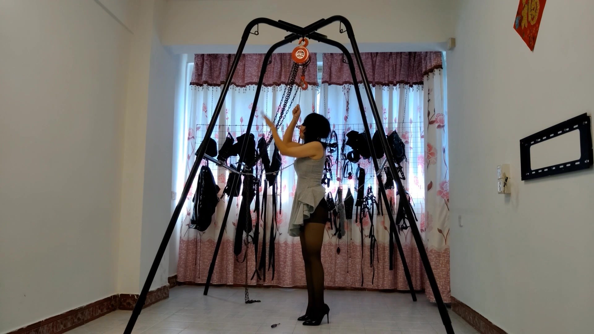 【浅浅原创】拘束架11 塞进木枷孔被鳄鱼乳夹拉扯铁链锁住