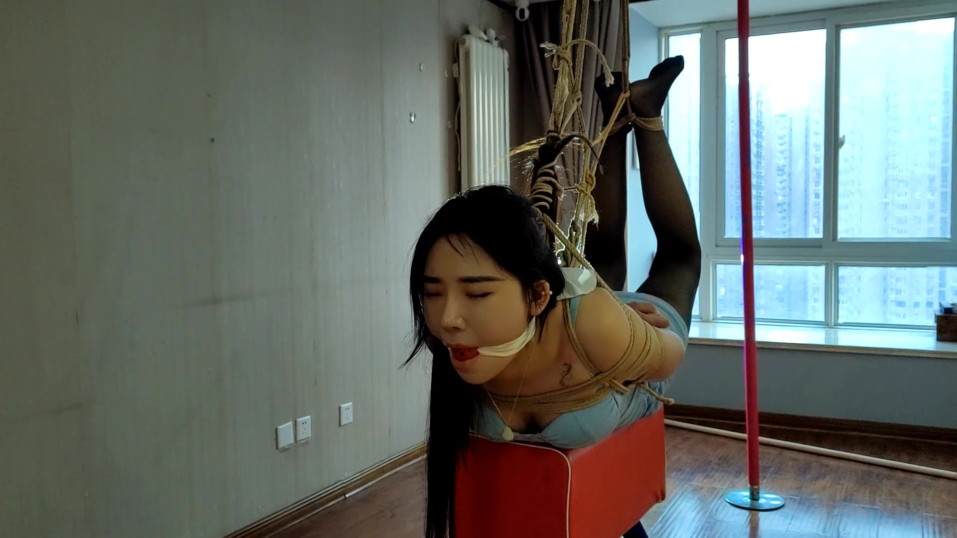 杨若琳黑丝捆绑,突发奇想,把杨若琳驷马捆绑在跳马上面,高高吊着,有洞口球堵嘴,看她表情就知道这个姿势很难受,口水流不停,抚摸,挑逗,打屁股,放置