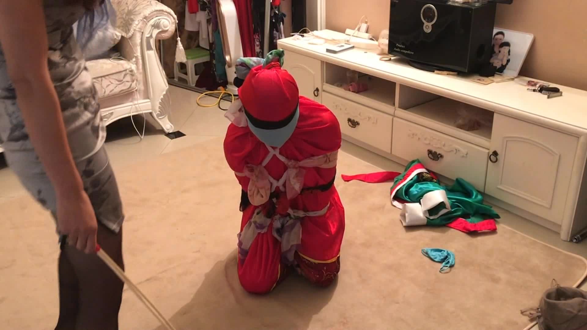 韩服女仆 丝裙包裹折磨 女S黑丝踩踏折磨,全包捆绑放置挣扎!