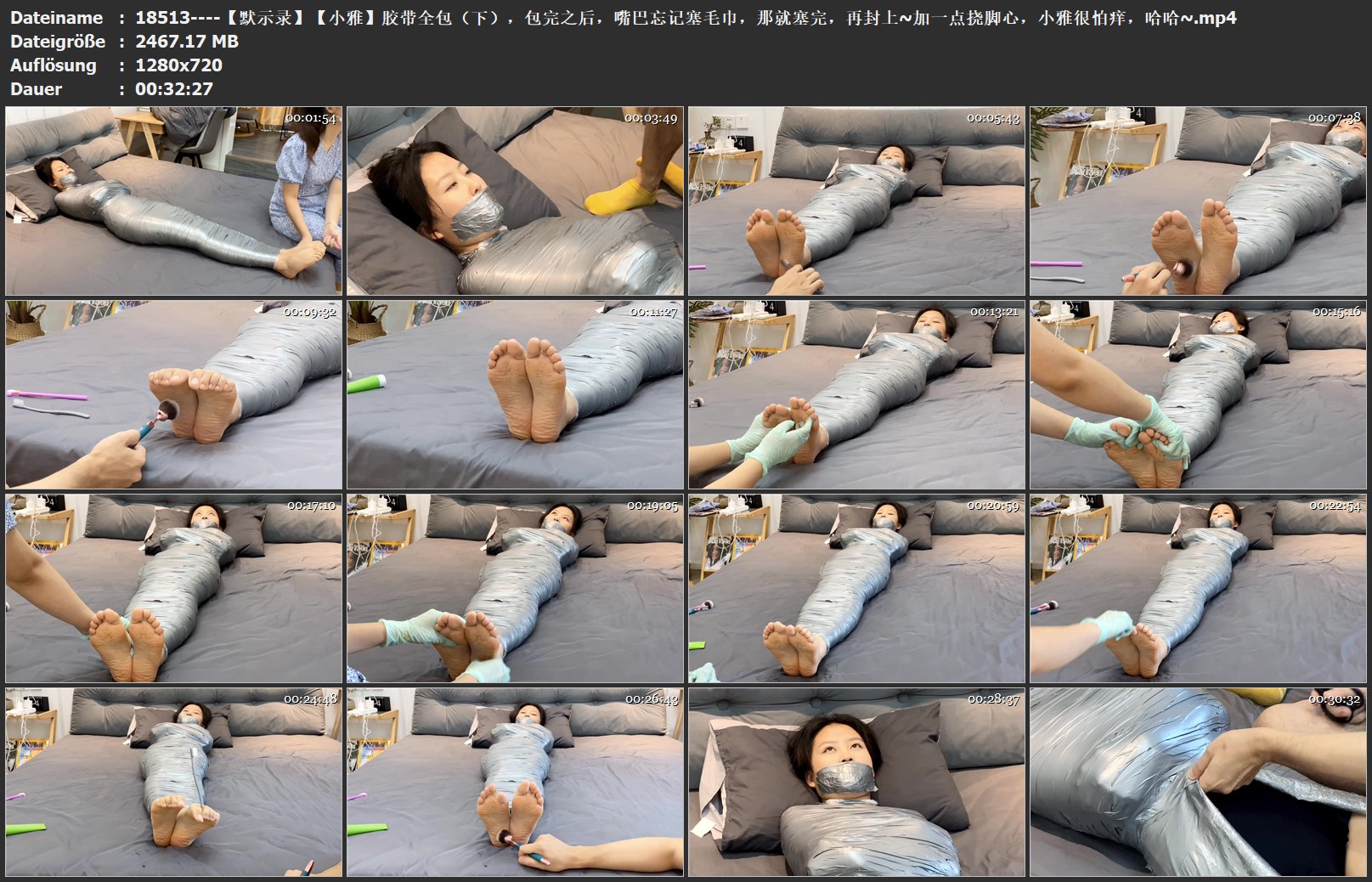 【小雅】胶带全包(下),包完之后,嘴巴忘记塞毛巾,那就塞完,再封上~加一点挠脚心,小雅很怕痒,哈哈~