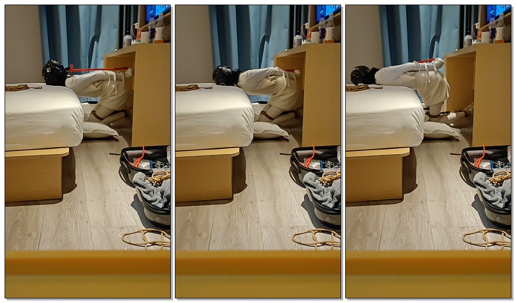 有伪娘母狗找到小樱想被调教,但是不会化妆,那就只能用全包头套了,戴上头套和单手套,头套和单手套连接,双腿绑死,后面[X_X]电动玩具,接下来自己慢慢享受吧,我就出门浪了。本来预定是放置3个小时的,结果心软头和脚没固定上,被挣脱了