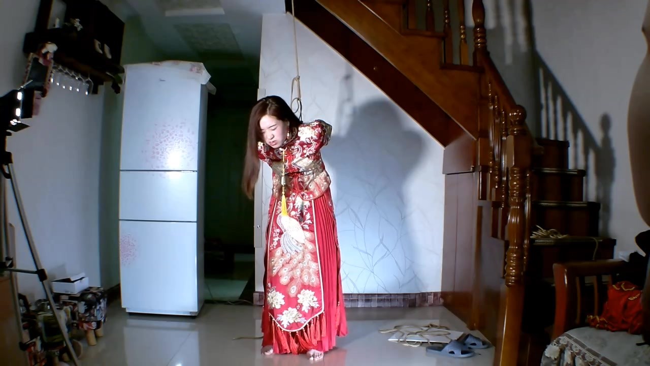 穿着新娘礼服的妹子给主人行礼认主,戴上手铐,给主人洗脚,按摩,舔脚 服伺主人,被戴上枷锁,插上标有私人女奴的标牌,蒙上眼睛,被主人调戏鞭打,戴上鼻链,被主人牵着参观婚房。看着绝美的新娘,主认欲火大盛,把漂亮的新娘吊了起来,用皮鞭抽打,妹子被戴上口枷,口水马上流了下来,对于主人的TJ幸福的接受,呻吟不断。。。
