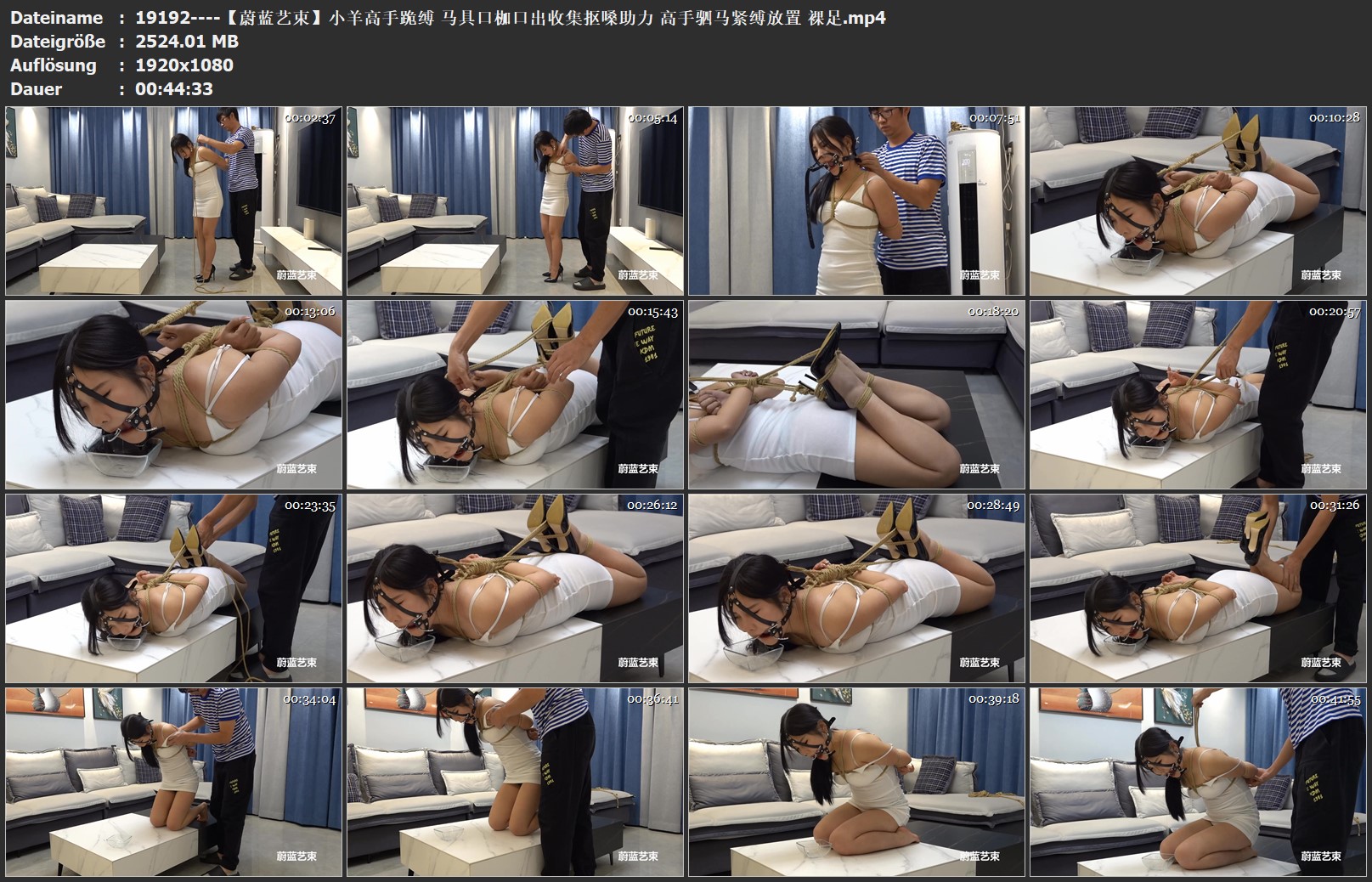 【蔚蓝艺束】小羊直臂股绳挣扎 高手坐缚 驷马紧缚SP 口枷口水TK喊叫 抠嗓子乳夹