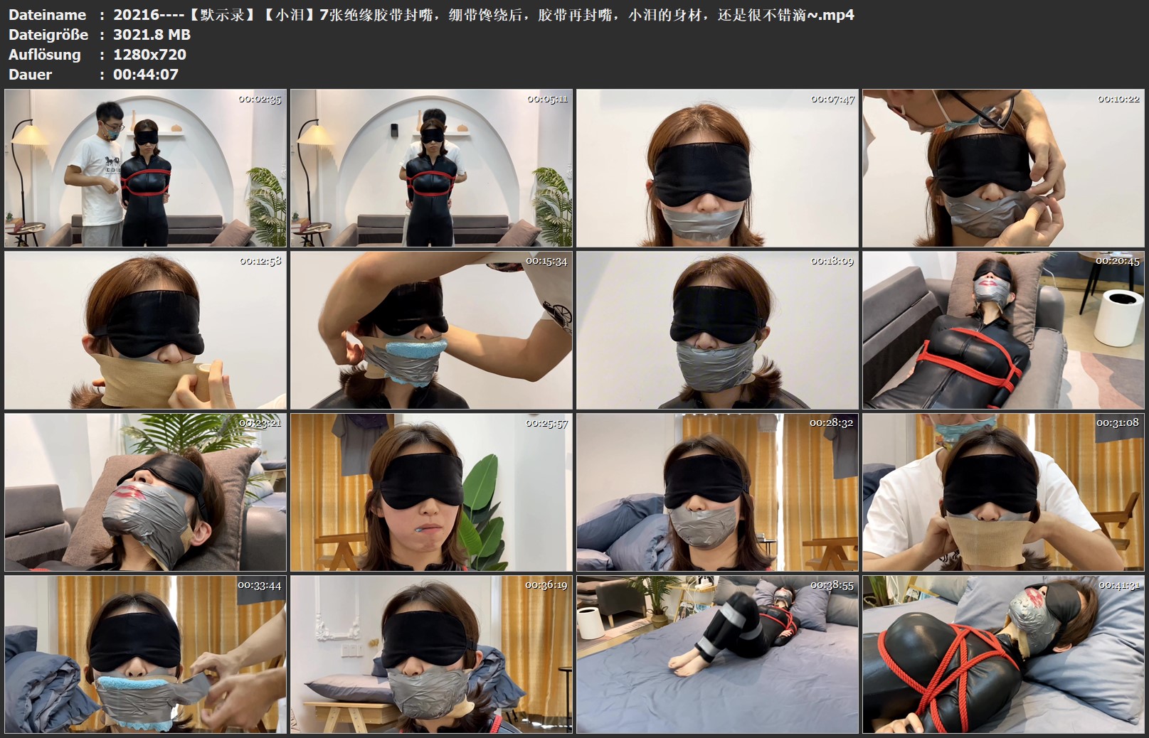 【默示录】【小泪】7张绝缘胶带封嘴,绷带馋绕后,胶带再封嘴,小泪的身材,还是很不错滴~