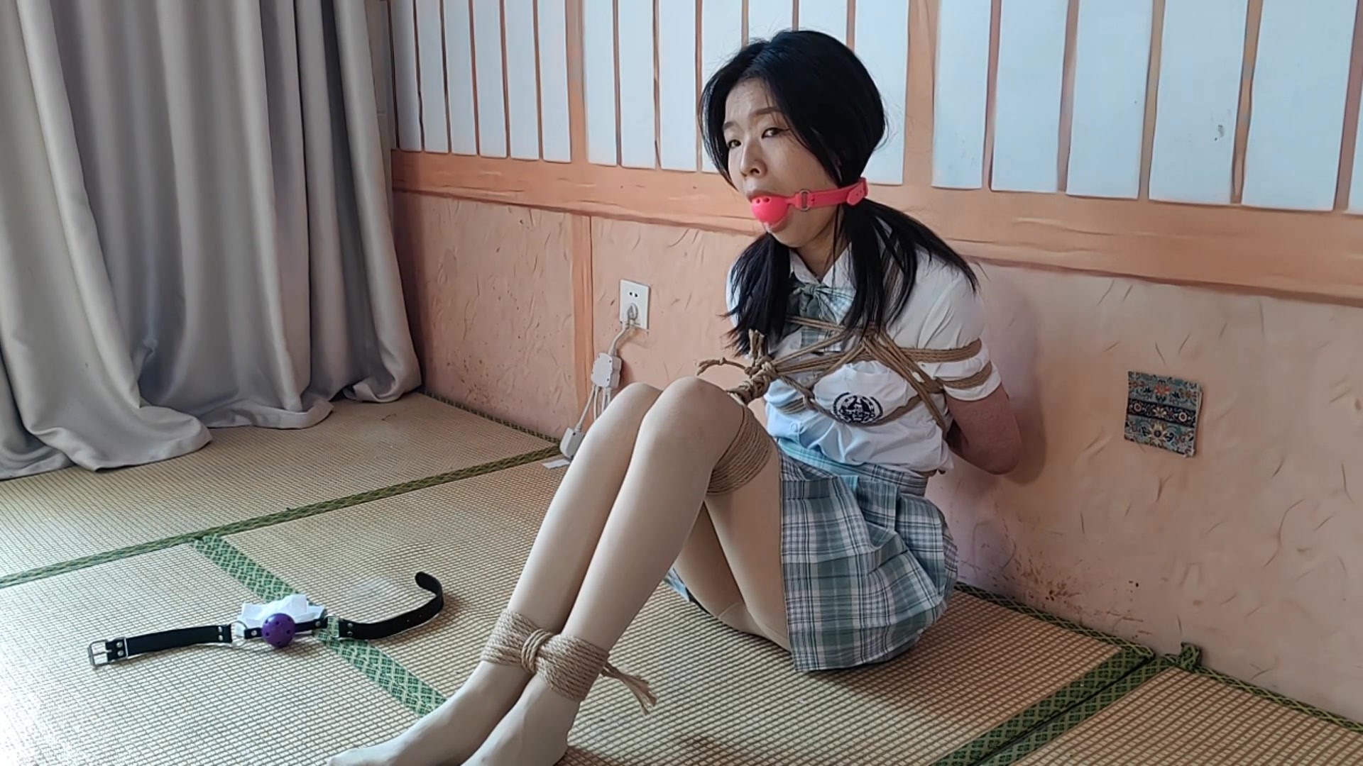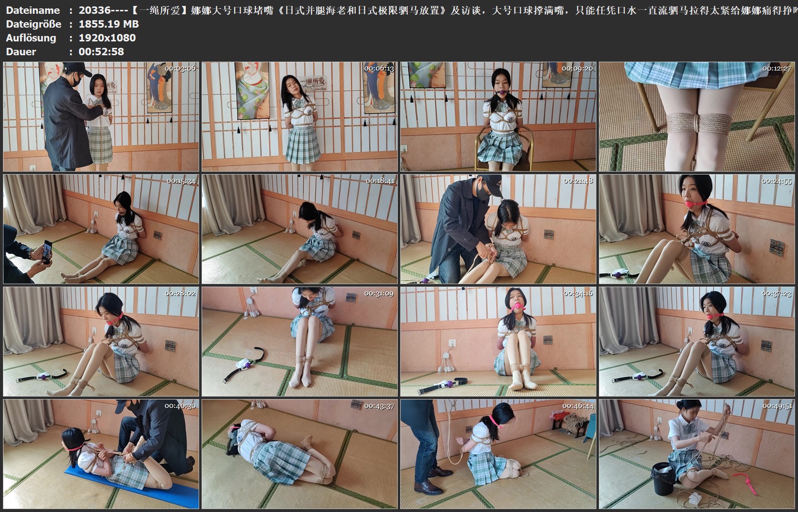 【一绳所爱】娜娜大号口球堵嘴《日式并腿海老和日式极限驷马放置》及访谈,大号口球撑满嘴,只能任凭口水一直流驷马拉得太紧给娜娜痛得挣吟