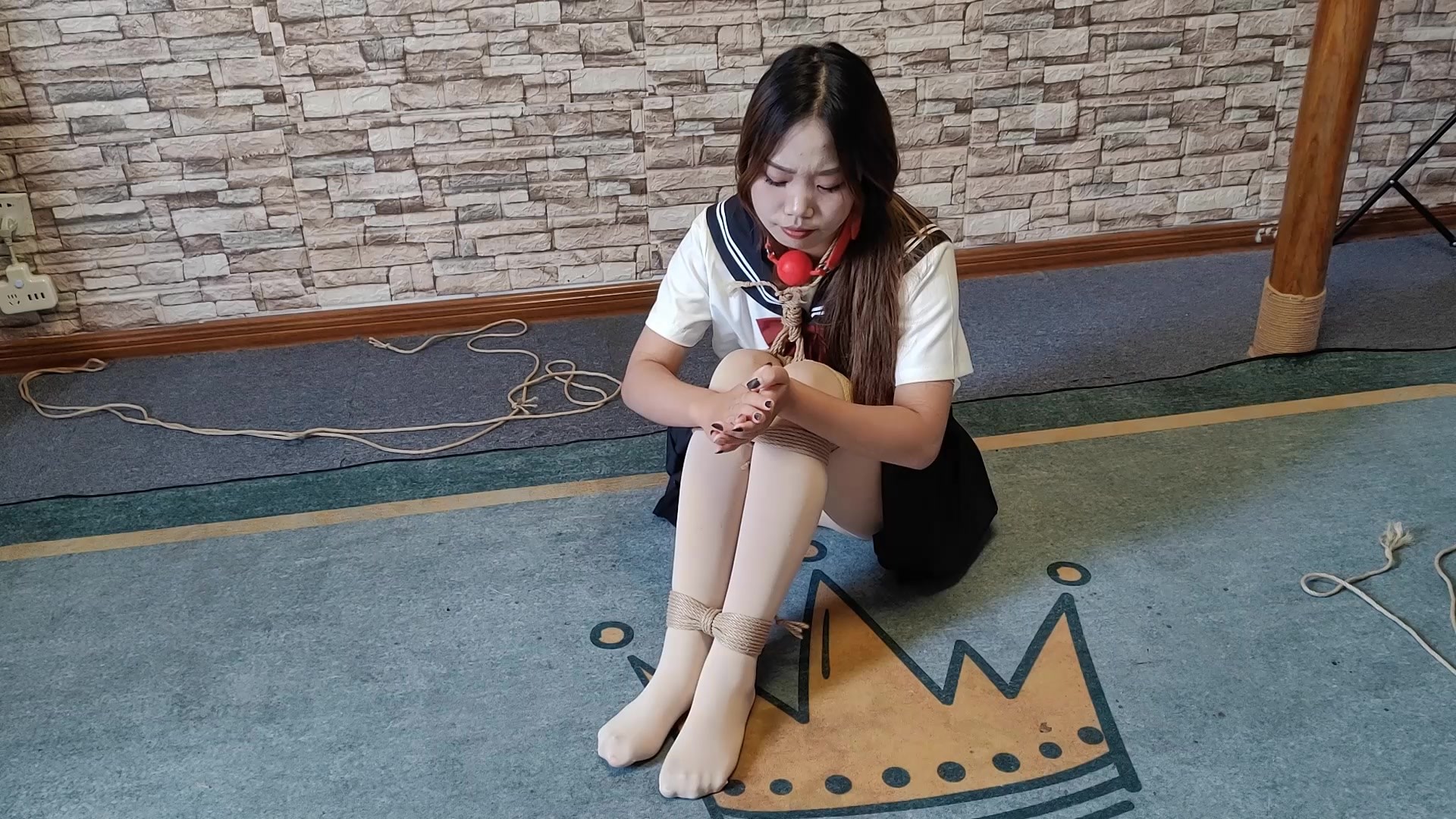新模大学生妮妮,长得非常好看,配合度也是非常高,先是绑上后手观音,然后绑上一个非常紧的直臂,将妮妮脚在紧紧绑上,给妮妮戴上中号的口球,在绑上并腿海老缚,紧得完全动不了,最后给妮妮换塞上一个5CM的大号口球,口球拉得非常紧,根本无法吐出,小嘴被撑到极限,自己挣扎但是太紧根本没有办法自己挣脱开,途中受不了,只能挣吟,叫帮她解开