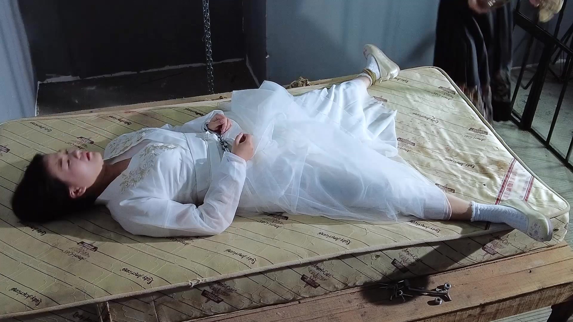 【樱束原创】《关押通奸女妃子》古装妃子通奸被抓获关牢房变态审讯!古装白袜牢房大字捆绑变态的全身TK/踩踏鞭打审讯被侍卫占够了便宜!牢房的床都要被她挣扎散架了!白色胶带封嘴!...