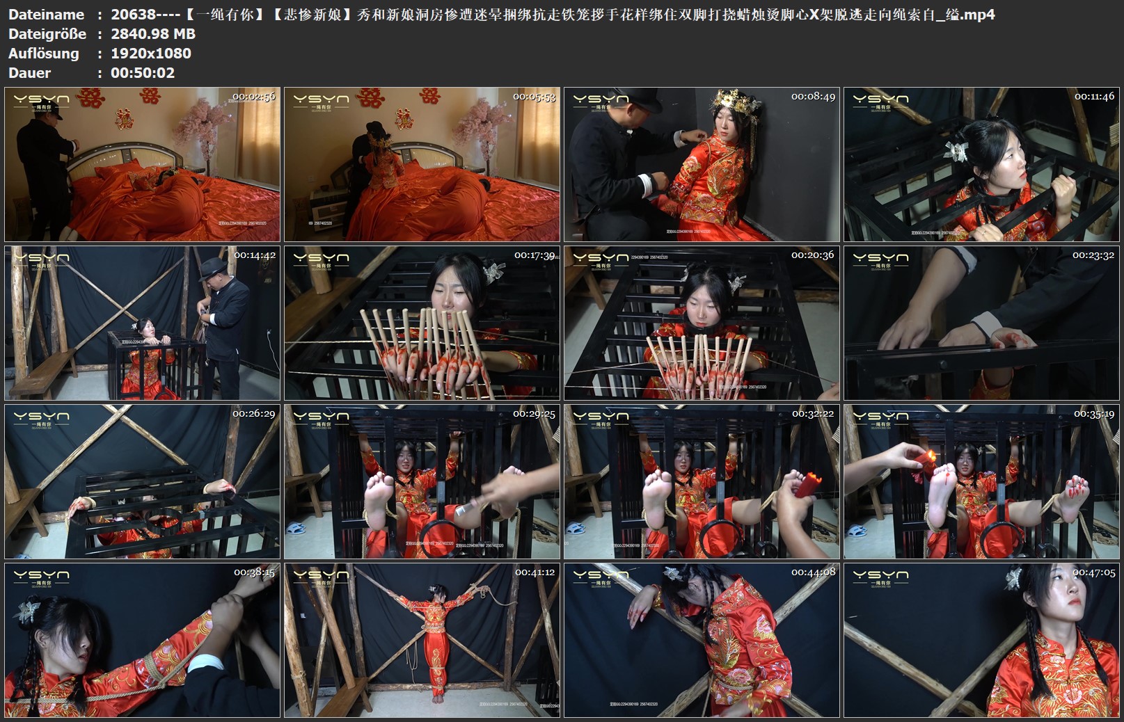 【悲惨新娘】秀和新娘洞房惨遭迷晕捆绑抗走铁笼拶手花样绑住双脚打挠蜡烛烫脚心X架脱逃走向绳索自_缢