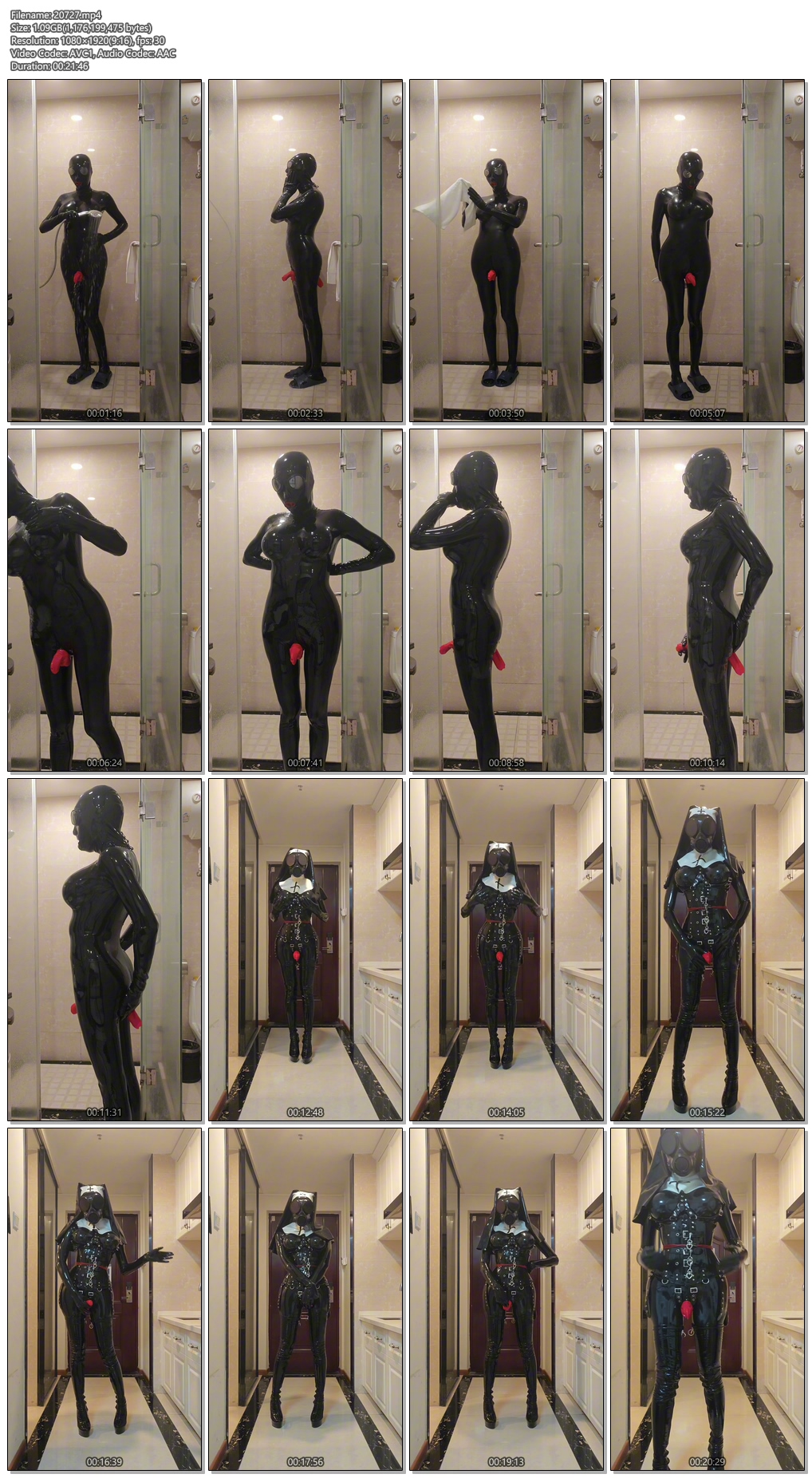 【kigurumi】呼吸控制 被黑色胶衣紧紧包裹住的娃娃,绑在浴缸里,头壳下是rf乳胶头套红嘴无法说话,将被怎么玩弄呢~